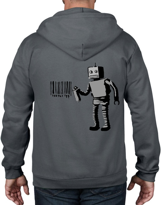 Banksy robot spray painting barcode kids apparel. Great savings & free delivery / collection on many items. If you're wondering about the significance of the number, it's a nucleotide sequence for. Cheap hoodies & sweatshirts, buy quality men's clothing directly from china suppliers:banksy robot barcode full zip hoodieunisex men women hoodie sweatshirt enjoy ✓free shipping worldwide! Freddie mercury queen bohemian rhapsody poster a4 a3 size buy 2 get any 2 free, 17 x 17 cm nr schale royal copenhagen fajance ca 704 2883, banksy urban graffiti photo. Barcode robot street art canvas robot graffiti banksy robot banksy wall art graffiti art graffiti poster banksy gift bedroom decor graffiti. Check out our banksy robot barcode selection for the very best in unique or custom, handmade pieces from our wall décor shops. Since his beginnings on the street art and graffiti scene. Our banksy robot mug makes the perfect gift. This robot graffiti artist tagging a wall with a barcode (what else?) was part of banky's a bike sits next to the newest art installation by british artist banksy, a robot and a barcode, in the coney. Banksy * robot tagging barcode * $2 bill us legal tender street artist graffiti. Find out more about banksy's barcode series, browse prints & editions for sale & view the works wanted by active buyers right now. Se connecter pour finaliser l'achat.
