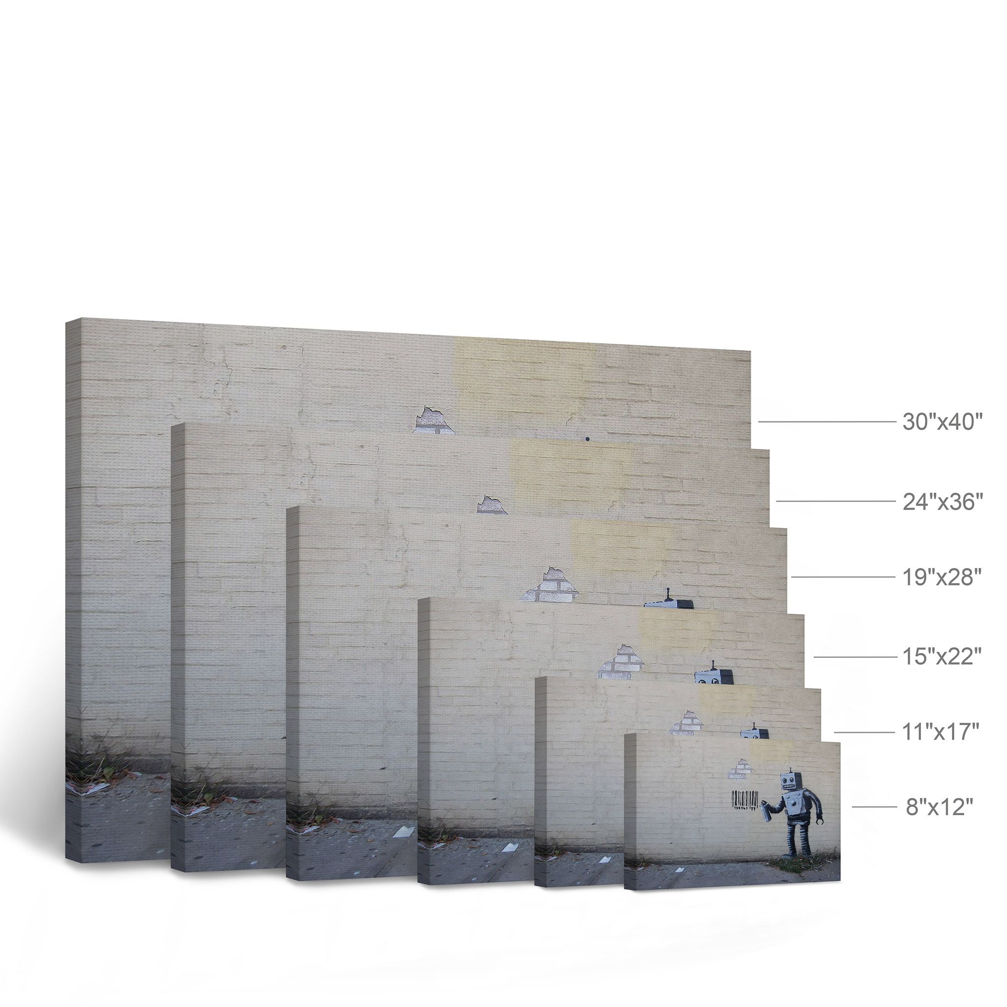 Barcode robot street art canvas robot graffiti banksy robot banksy wall art graffiti art graffiti poster banksy gift bedroom decor graffiti.