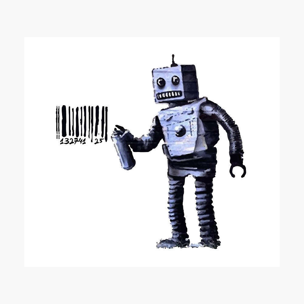 Banksy Robot Barcode : Banksy Robot Tagging Barcode Colorized Jfk Half Dollar Us Coin Coney Island Antiquitaten Kunst Kunstdrucke Romquest Com : Love this poster but my robots are not too wild about it.
